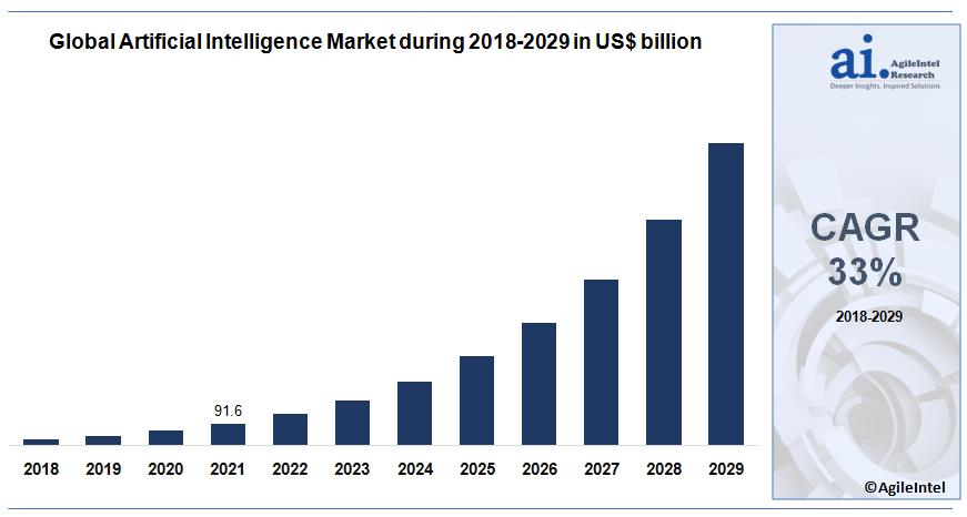 The AI market sees a robust CAGR from 2018 to 2029, showcasing the potential for continuous expansion and innovation.